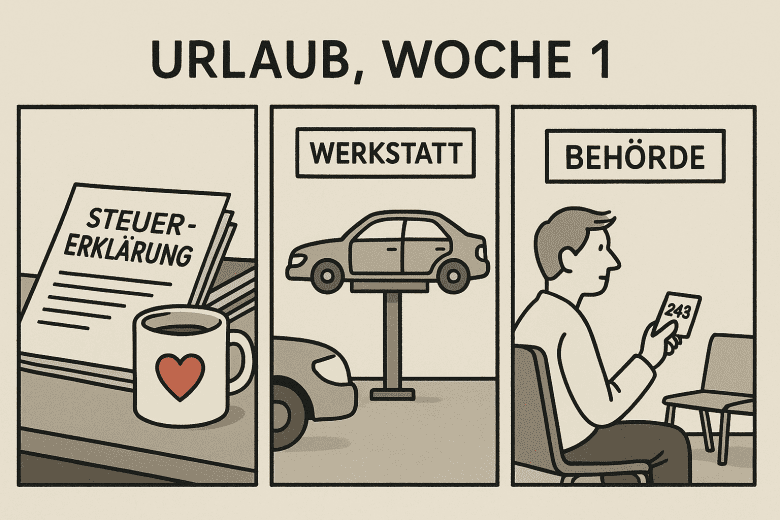 Urlaub – das klingt nach Sonne, Freiheit und Sangria.In meiner Realität heißt das: Steuererklärung, Auto in die Werkstatt, Behördengänge und der epische Kampf mit Formularen, die vermutlich schon vor meiner Geburt veraltet waren. Die Steuererklärung habe ich tapfer begonnen – und direkt wieder abgebrochen, als mich das Finanzamt in seiner unnachahmlichen Freundlichkeit fragte, ob ich …